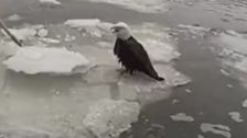 Beamte der New Yorker Polizei wurden durch Schreie auf einen verletzten Weißkopfseeadler auf einer Eisscholle im Hudson River aufmerksam.